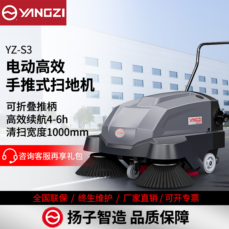 扬子YZ-S3手推式扫地机,清扫车,厂家直销,省30%成本,工作时间:3-4h,重量:90kg,效率:4000m2/h,大于10人工作效率,干净不留痕,免费试机,买贵包退.专业的售后团队,免费上门指导操作和维护.扬子YZ-S3喷雾款,想进一步了解,请咨询在线客服或官方免费热线,客服详细解答产品参数和最新活动价格