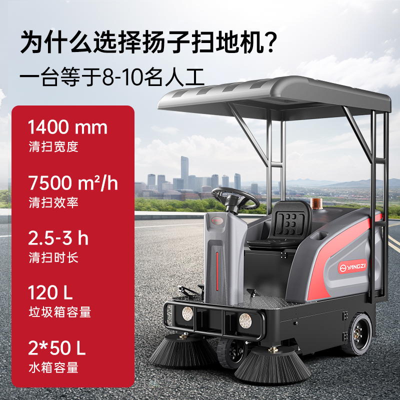 扬子YZ-SR 140/120驾驶式扫地车,清扫车,厂家直销,省30%成本,工作时间:2.5-3h,重量:360kg,效率:7500m2/h,大于10人工作效率,干净不留痕,免费试机,买贵包退.专业的售后团队,免费上门指导操作和维护.扬子YZ-SR 140/120分普通款和锂电款,想进一步了解,请咨询在线客服或拨打官方免费热线,客服详细解答产品参数和最新活动价格