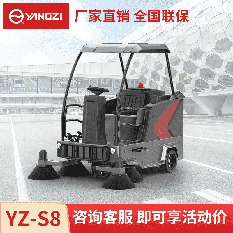 扬子YZ-S8驾驶式扫地车,清扫车,厂家直销,省30%成本,工作时间:4h,重量:650kg,效率:13400m2/h,大于15人工作效率,干净不留痕,免费试机,买贵包退.专业的售后团队,免费上门指导操作和维护.扬子YZ-S8分普通款和锂电款,想进一步了解,请咨询在线客服或拨打官方免费热线,客服详细解答产品参数和最新活动价格